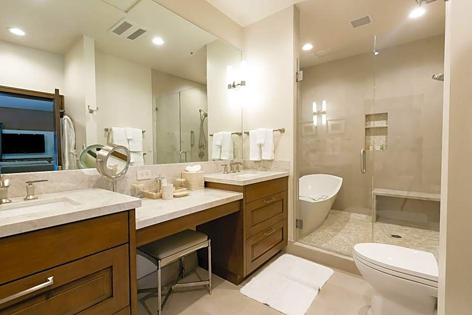 Featuring a luxurious private balcony with a private hot tub, this elegantly decorated room provides two fireplaces, a spa bath, bathrobes and slippers. A white marble kitchen with stainless steel appliances is featured. Modern necessities like a flat-screen TV and an iPod docking station are provided.